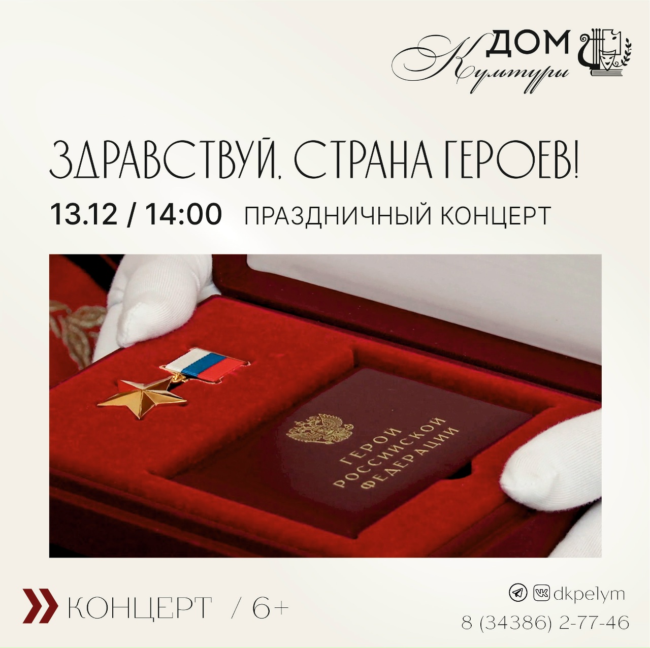 13 декабря в 14:00 в нашем Доме культуры состоится концертная программа «Здравствуй, страна героев»