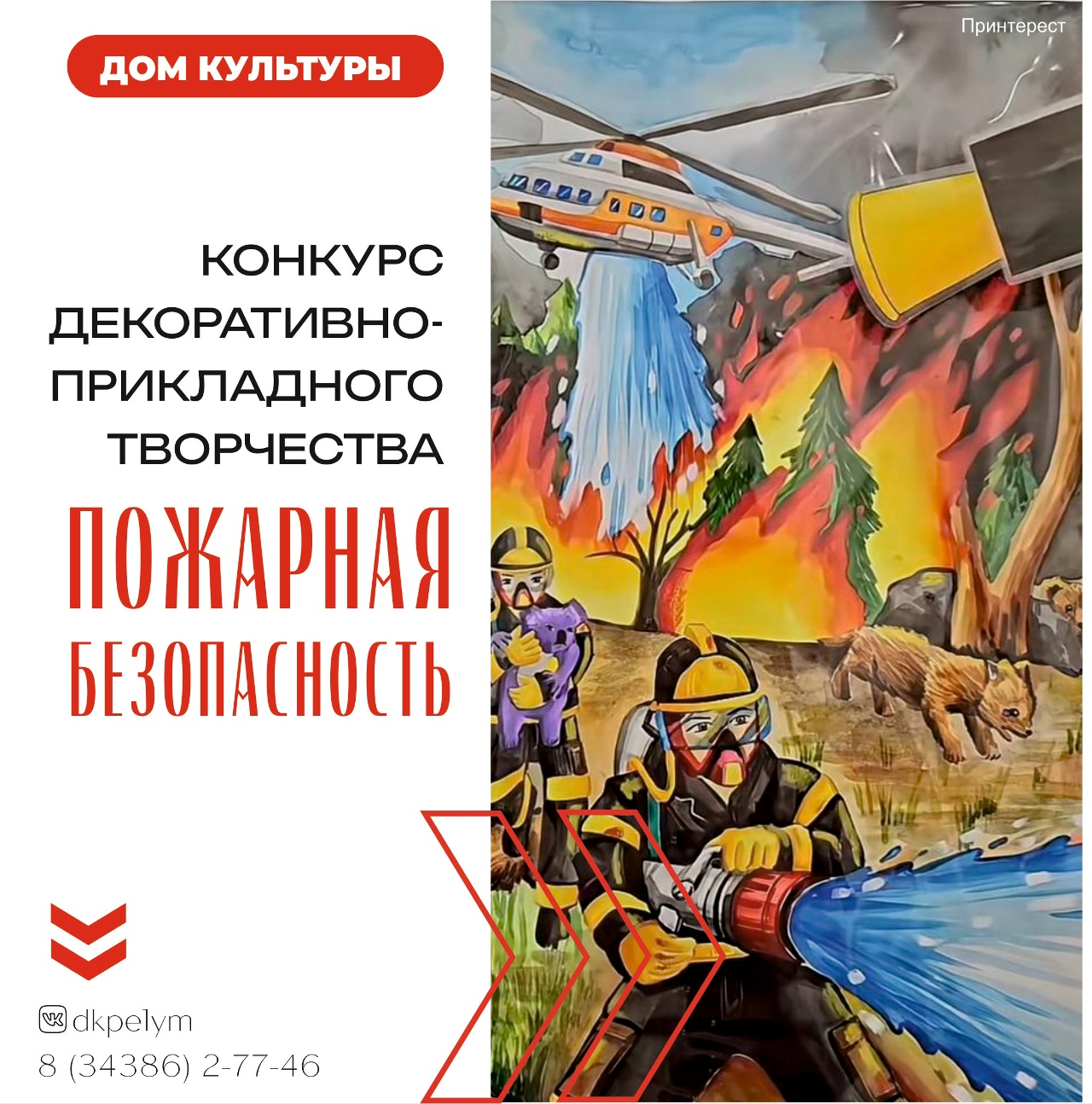 Чтобы сделать эту важную тему ближе и понятнее, особенно для детей, мы запускаем конкурс декоративно‑прикладного творчества «Пожарная безопасность». Через творчество участники смогут выразить своё видение того, как предупредить пожары и защитить себя и близких.